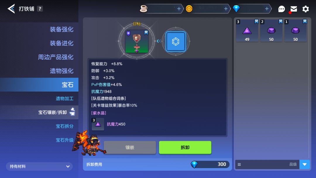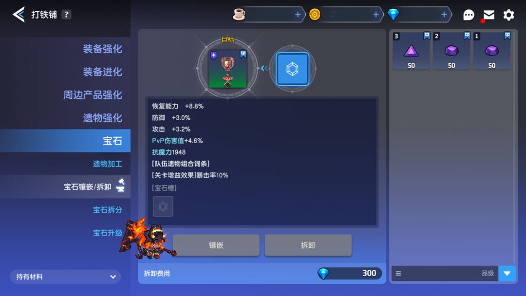 如果已经镶嵌了宝石,可以通过消耗钻石拆卸遗物上的宝石