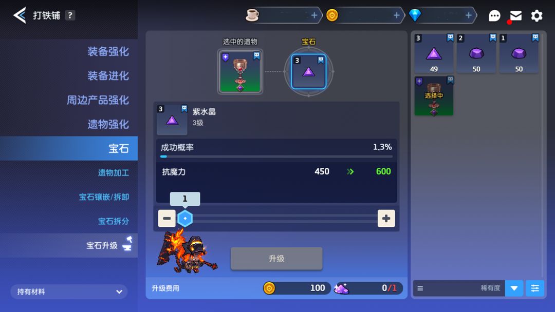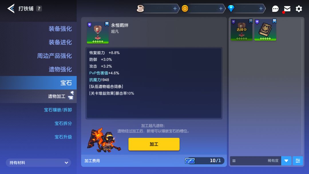 可通过使用加工券来增加遗物的镶嵌宝石槽位。