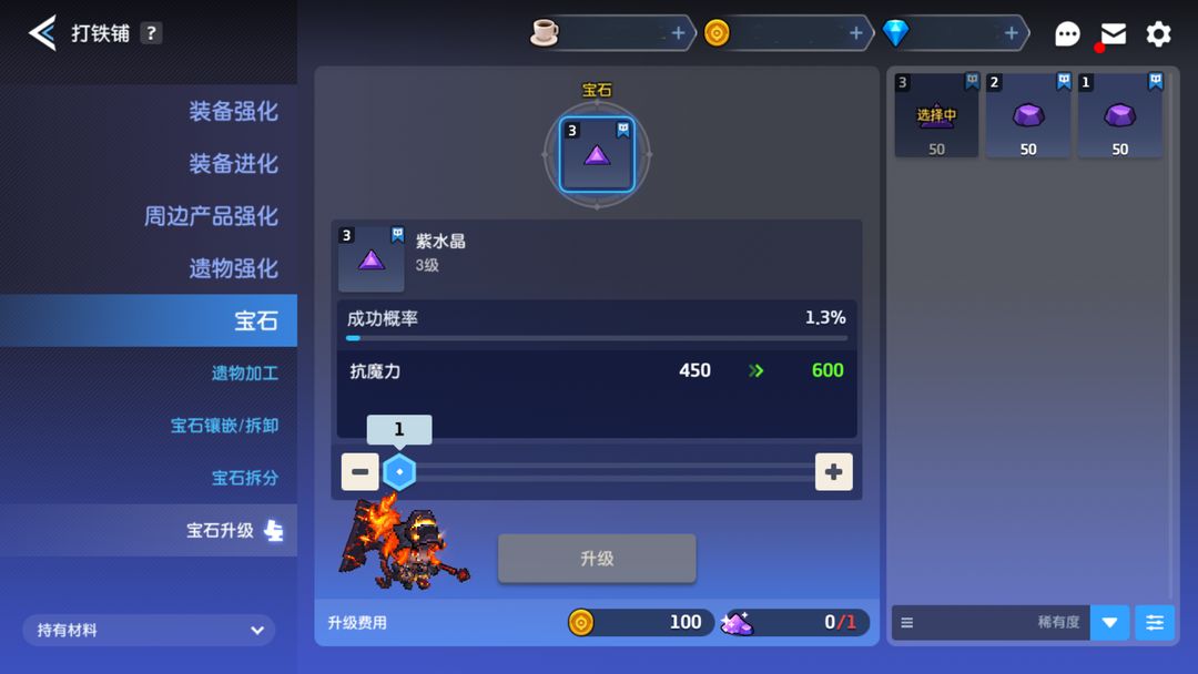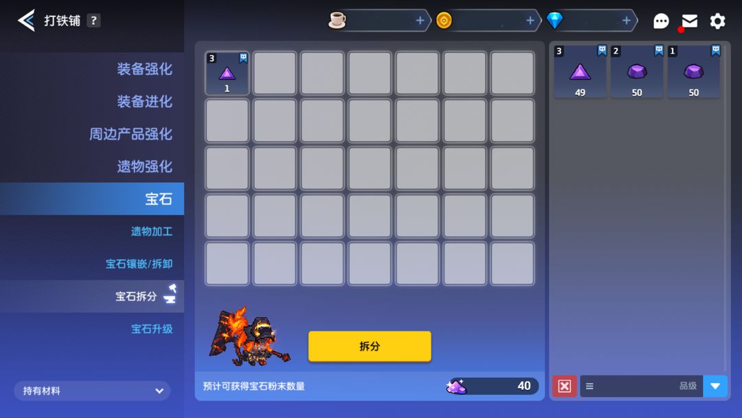 按照被拆分宝石的品级,获得的宝石粉末数量不同。