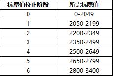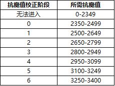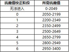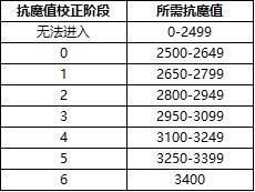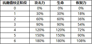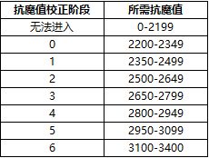 如果英雄的抗魔值高于阶段要求一定量,他/她将获得阶段性的抗魔值校正。