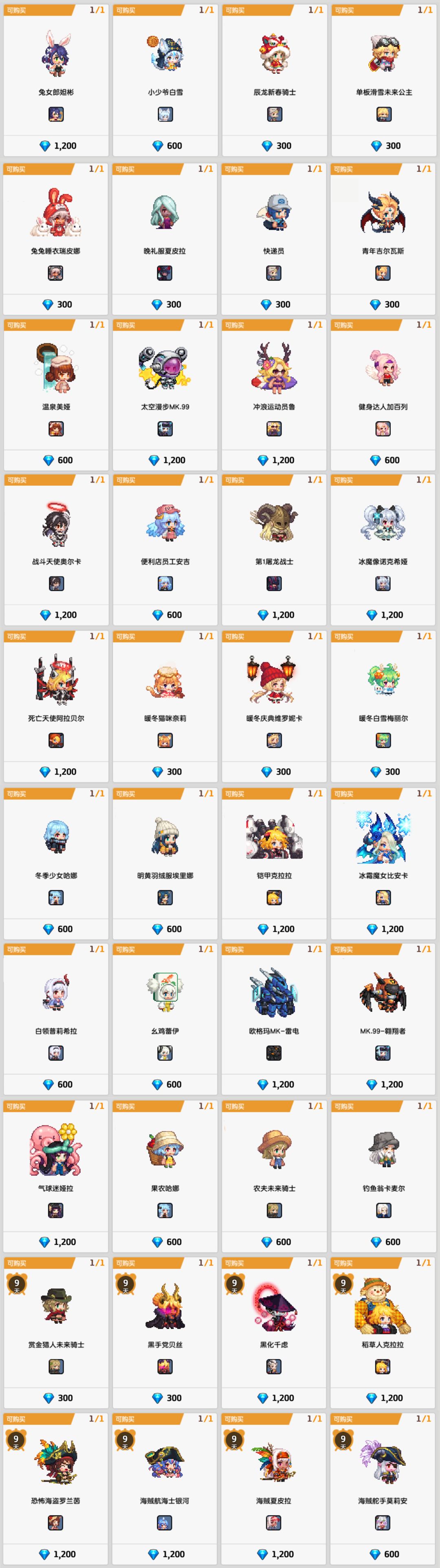 英雄时装:兔女郎妲彬、小少爷白雪、宇宙司令官瑞皮娜、宇宙猫咪卡瑞娜、宇宙机械师鸟嘴医生、宇宙空间站治安队贝丝