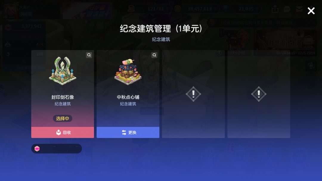 -选择纪念建筑时的“回收”按钮已更改为“管理”按钮。