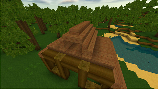 继续往上错开叠加一层木质楼梯,注意摆放的方向。