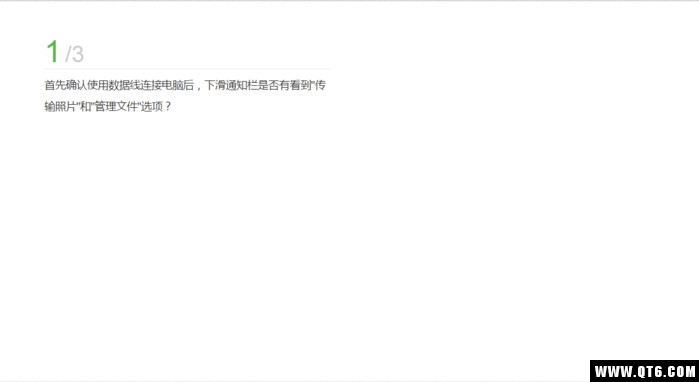 1、首先确认使用数据线连接电脑后,下滑通知栏是否有看到"传输照片"和"管理文件"选项?