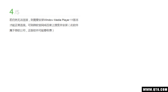 4、若仍然无法连接,则需要安装Window Media Player 11版本才能正常连接,可到微软官网或百度上搜索并安装(此软件属于微软公司,正版软件可能要收费)。