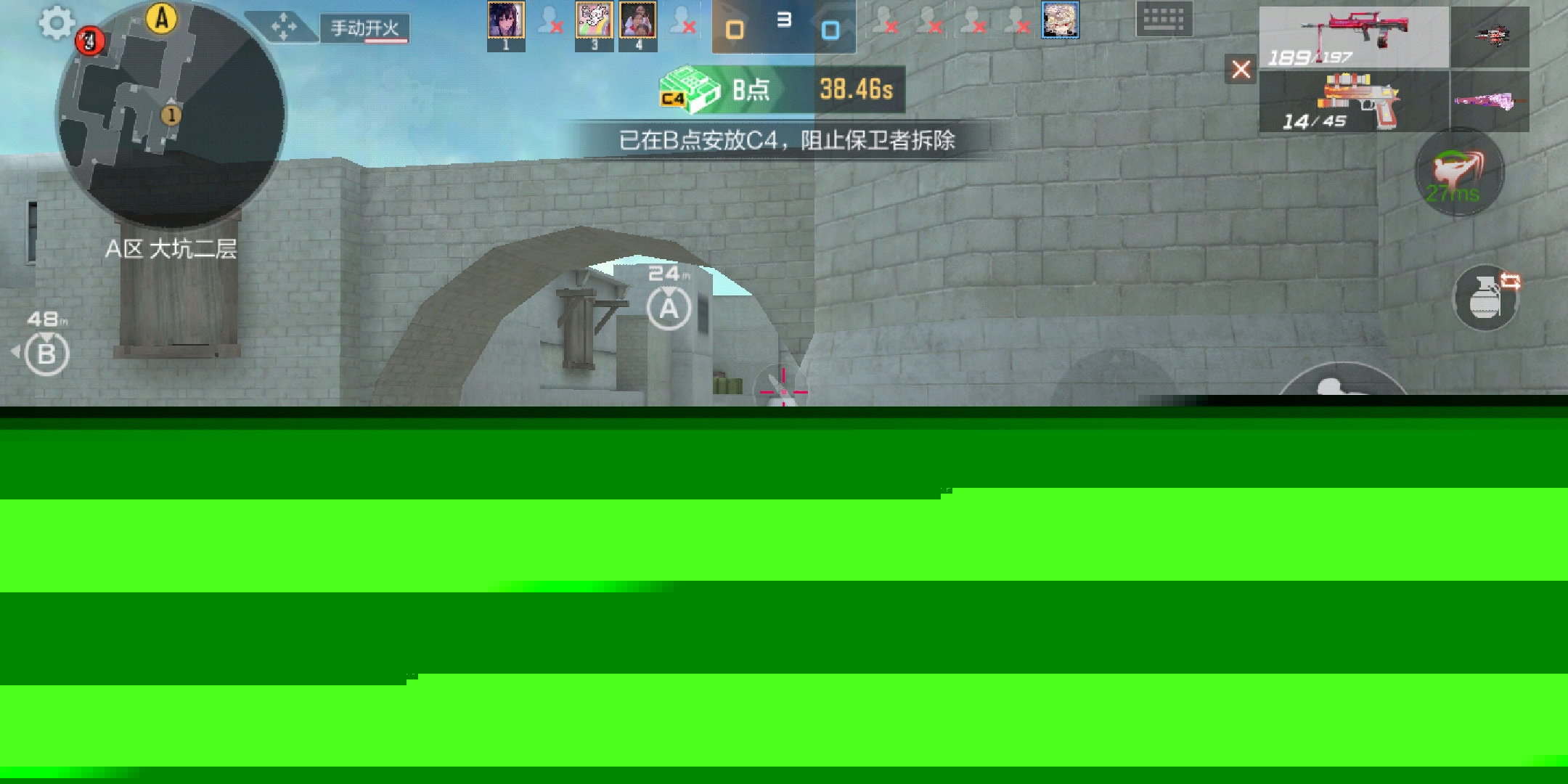3.手雷炸烟:手雷的爆炸可以驱散烟雾弹的烟雾,在烟雾中短暂形成一个可以看到另一侧视野的球体区域,该区域会随时间逐渐恢复;