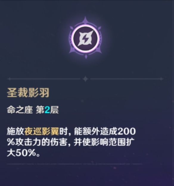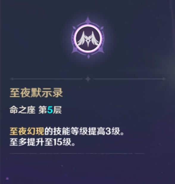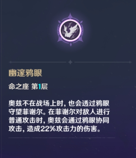 主C皇女的重要命座。解锁一命后,在奥兹真空期,皇女的普通攻击能额外对敌人造成一段22%攻击力的物理伤害(皇女普攻暴击时相应的额外伤害也会暴击),相当于变相增加了皇女的普攻倍率。
