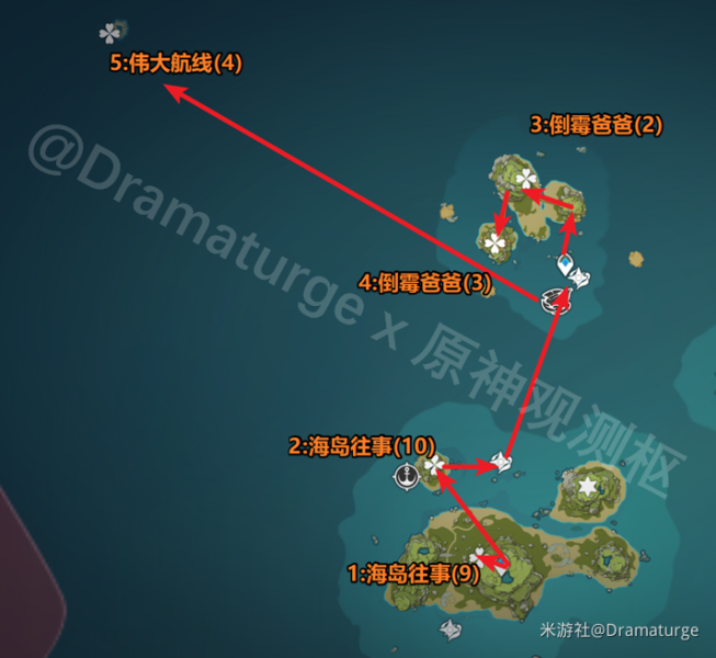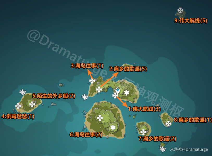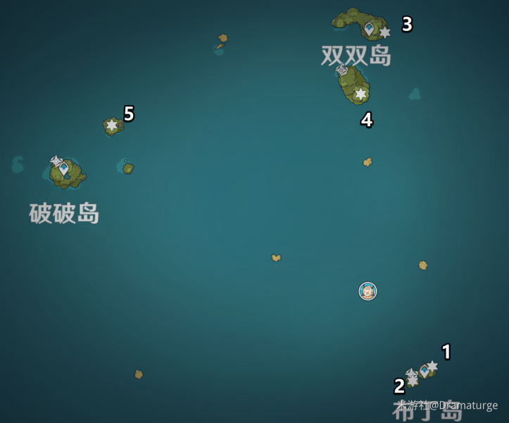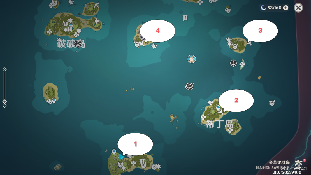 6.14之后,最后的四个海螺也终于刷新出来了。为了避免在观测枢找不到剩下的四个究竟是哪几个,我也罗列了剩下这四个的点,都很简单。